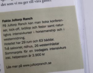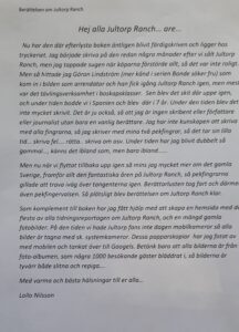 I boken hänvisar jag också hit till hemsidan. Här har jag samlat många av de fotografier och tidningsreportage som inte fick plats i boken, men som är en viktig del av historien om Jultorp Ranch. Bilderna är hämtade ur gamla fotoalbum som tusentals gäster har bläddrat i genom åren, så de kan vara både slitna och repiga – men minnena lever kvar.